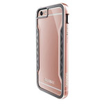 Розово-золотистый противоударный чехол X-doria Defense Shield для защиты смартфона Apple iPhone 6 (цвет Rose Gold, изготовлен из авиационного алюминия, оснащен резиновой прослойкой для защиты от ударов, стандарт армейской защиты MIL-STD-810G)