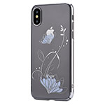Стильный пластиковый чехол серебристого цвета со стразами Devia Crystal Lotus для смартфона Apple iPhone X (цвет Silvery, оригинальные стразы Swarovski Elements, защищает телефон по-кругу со всех сторон)