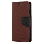 Темно-коричневый кожаный чехол Mercury Goospery Fancy Diary Case для защиты от ударов и царапин смартфона LG L90 D410. Чехол имеет несколько положений установки смартфона для удобного просмотра видео