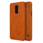 Коричневый кожаный чехол боковая книжка Nillkin Qin leather case для защиты смартфона Samsung Galaxy A6 plus 2018 (с прорезями в крышке для динамиков) p/n: NLK-22256 дилерская цена: — KZT товара нет в наличии