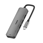 Универсальный USB-хаб темно-серого цвета Rapoo Multifunctional Adapter 5-in-1 XD100: входной разъем USB Type C, три высокоскоростных выходных USB 3.0 порта, HDMI-порт, USB-C PD вход для подключения зарядки p/n: XD100-GRAY-19141 дилерская цена: — KZT товара нет в наличии