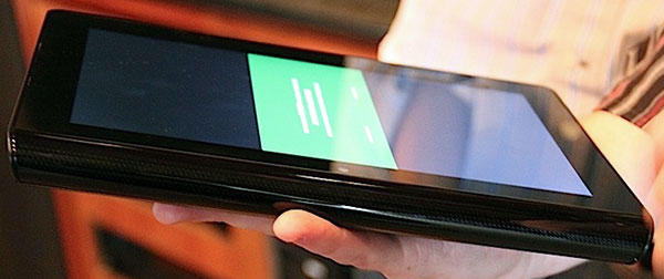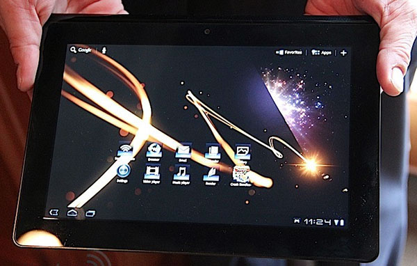 Углы обзора 9,4-дюймового экрана с разрешением 1280×768 также весьма хороши. Никаких проблем с просмотром фильма сбоку или при наклоне устройства не возникает. Журналисты знакомились с устройством в помещении, а потому весьма любопытно было бы увидеть, как поведёт себя экран при ярком солнечном свете. Можно отметить, что проигрывание HD-фильмов было весьма плавным.
