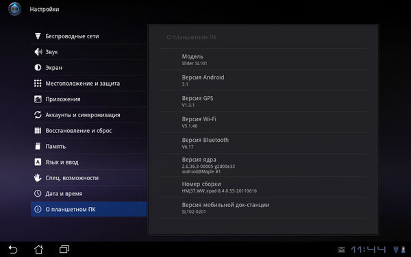 В планшете установлен процессор Nvidia Tegra 2, который позволяет запускать высокотребовательные игры. Увы, игра Spider-Man HD, которая предустановлена в планшете, запросила 250Мб допольнительных данных, а после скачивания отказалась запускаться. В устройстве, в зависимости от комплектации, стоит 512Мб или 1Гб оперативной памяти и 16Гб или 32Гб встроенной SSD памяти. Помимо этого, как я уже говорил, можно расширить память с помощью карт Micro SD. Что касается связи, то 3G здесь нет, но есть стандартные Wi-Fi 802.11n и Bluetooth 2.1. Мало, конечно, но для связи с интернетом и между устройствами хватит. Начинка планшета неплохая, лучше чем у многих устройств такого уровня.