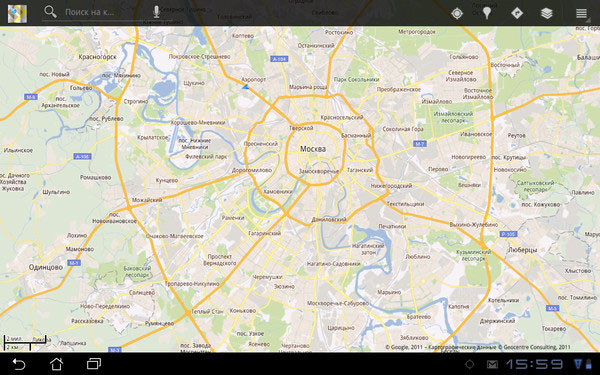Ну и куда же Android без Google Maps. Карты здесь выглядят также, как и на любом другом устройстве. К сожалению, GPS в здании не заработал, что ожидаемо.