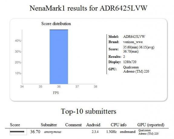 Устройство тестировалось приложением NenaMark1 и работало под управлением операционной системы Android 2.3.4. По слухам новинка будет работать в сетях Verizon. Но некоторые верят, что смартфон станет общедоступным (то есть без привязки к какому либо из операторов).